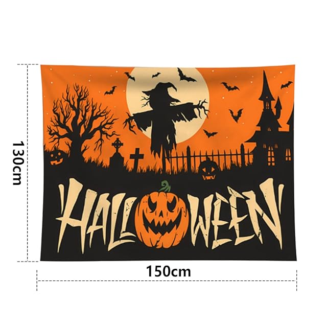 koundeneko ハロウィン飾り タペストリー 大判 かぼちゃ Halloween 壁掛け 背景バナー 飾り付け フォトポスター 雰囲気作り 写真撮影背景 パーティー お化け屋敷 インテリア 部屋装飾 150*130cm