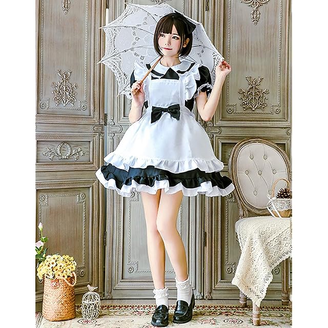 [milky time] メイド服 選べるカラー 半袖 長袖 2way仕様 メイド コスプレ ハロウィン (黒, XL)