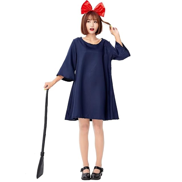 【魔女の宅急便】のキキ風のコスプレセットです。シンプルなデザインで、ワンピースとカチューシャを着用すると、あの大人気キャラクター「キキ」に変身になれます。