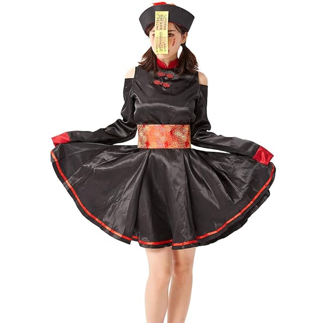 商品名:YIUHK キョンシー コスプレ 仮装 ハロウィン レディース ワンピース 人気 お札 帽子(辮髪付き) タトゥーシール チャイナ風 イベント用 プレゼント