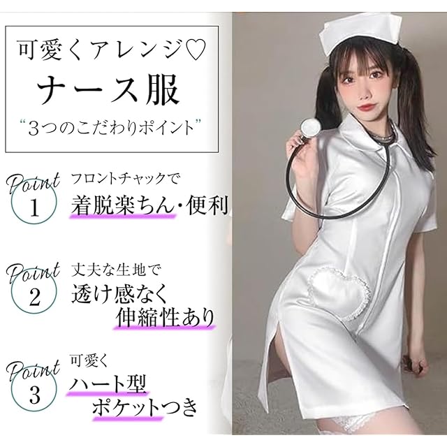 豊富なサイズ展開!S~5XLまで8サイズ展開!全ての方にお愉しみ頂ける幅広いサイズをご用意いたしました。<br> 【フロントチャックで便利】フロントチャックは全開放されます。誰でも着脱が簡単で便利な設計です。<br> 【丈夫な生地】透け感なく、丈夫で手触り良い作りとなっています。伸縮性あり。 <br> 満足の4点セット→ ①ナース帽、②ナースワンピース、③白ストッキング、④ヘアピン <br> 【こんな人にオススメ】ハロウィン、誕生日、クリスマスなどでの思い出作りや、コスプレに興味がある・非日常を体験してみたい人にもおすすめです。<br> 【30日付き】30日間の返品返金をご用意していますので、気に入りましたら安心してご購入ください。
