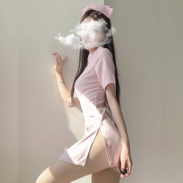 キュートなナース風セクシーコスプレ。やや短めのミニスカート丈でセクシーさもアピール。素敵な夜をお過ごしいただけます。