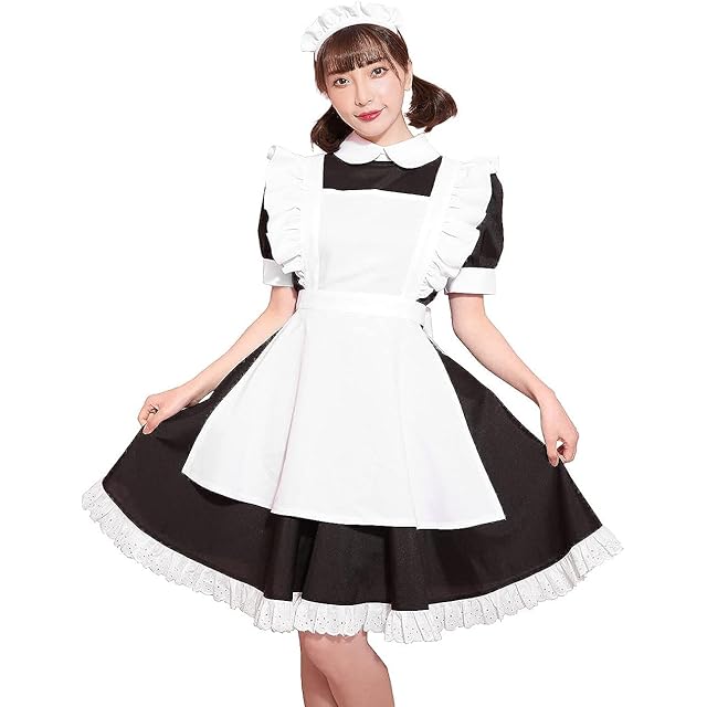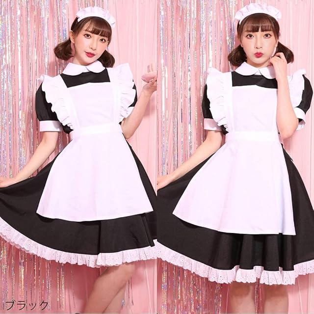 商品説明:可愛いメイドのコスチュームならコレ!ワンピース、エプロン、カチューシャの豪華3点セット。エプロン取り外し可能!全2色