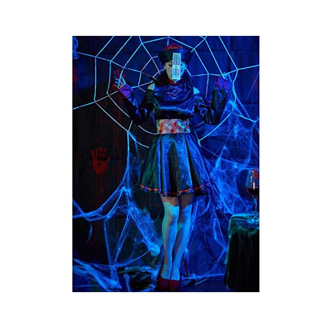 古代の帽子が本格的です。お札は取り外す可能で、お好きな所の付けて自由に使用できます。胸チャイナ風のボタン飾りがかわいい、ベルトのチャイナ刺繍風がポイントです。肩をチラ見せして可愛さもアピール!バックジッパーデザインで着脱しやすい。