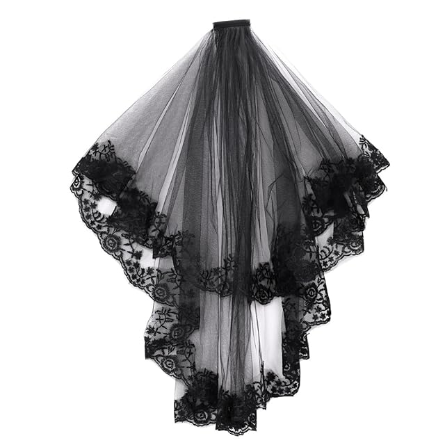 [LONTG] ウエディングベール 花嫁ベール コーム付き 2層 ブラック ブライダルベール 美しい レース刺繍 結婚式 二次会 ハロウィン 余興 イベント パーティードレス 魔女コスプレ 幽霊 悪魔仮装 撮影 小道具 レディース コスチューム 髪飾り アクセサリー