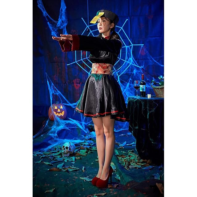 [JUNDOMECY] ハロウィン 仮装 キョンシー 大きいサイズ 大人 レディース 女性用 衣装 怖い ゾンビ コスプレ 中国ゾンビ ホラー コスチューム 演出服 イベント用品 変装パーティー 文化祭 (XL)