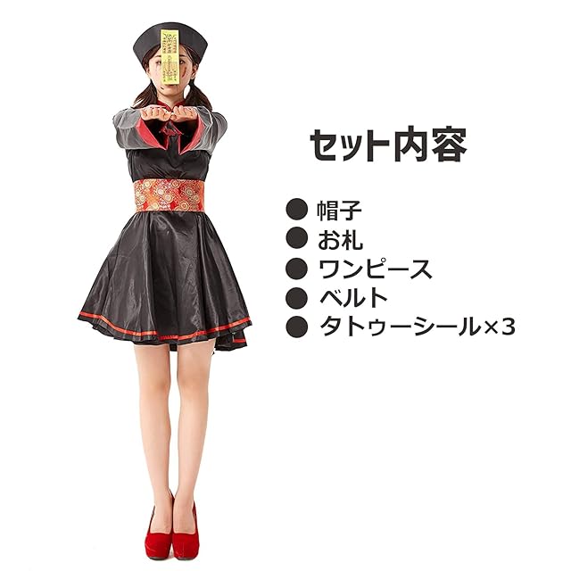 商品名:[iinoo] キョンシー コスプレ レディース セクシー 仮装 可愛い ハロウィン ゾンビ ワンピース お札 帽子 【5点セット】 フリーサイズ