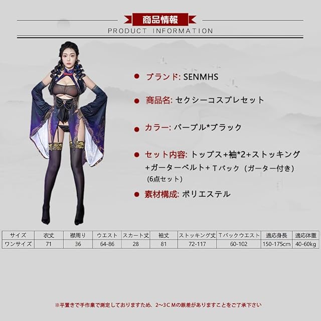 セクシーランジェリー風デザインで大胆にアピール:透け感と大胆なカットデザインが特徴的なランジェリー風コスチュームは、身体のラインを美しく引き立て、エレガントかつセクシーな印象を与えます。パーティーやイベントで自信を持って主役になれる魅力的なデザインです。
