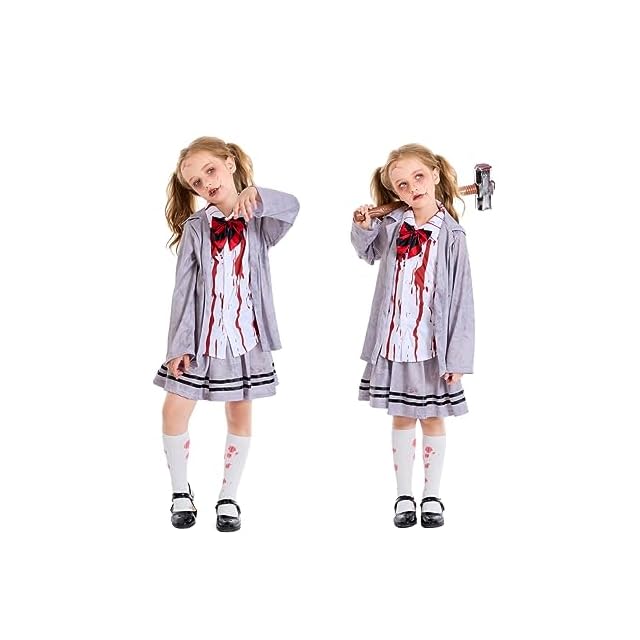 [JUNDOMECY] ハロウィン コスプレ ゾンビ 血まみれ レディース 女の子 男の子 大きいサイズ 長袖 学生服 制服 ホラー 大人 子供 親子 ペア デビル 幽霊 衣装 イベント 仮装パーティー 変装 演出服 学園祭 文化祭 Halloween (M, レディース、女の子)