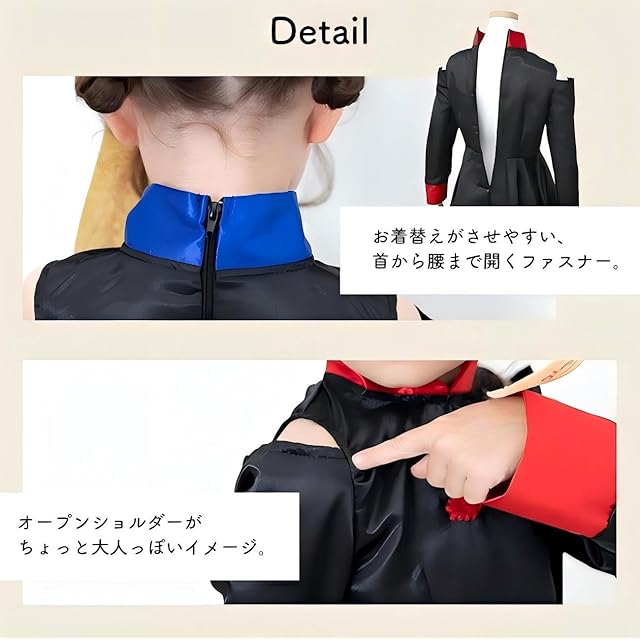 【高品質】高品質な布地をを採用しただから、手触りと質感がすばらしいです。柔らかい生地と心地よい肌触りが、さっぱりしている感じを与えて。首から腰まで、背中が大きく開くファスナーで小さいお子様もお着替えが簡単。ベルトのチャイナ刺繍風がポイントです。縫い目などの細部も丁寧につくられておりますので、本格的な着こなしが可能です。肩にスリットが入ったオープンショルダーがちょっと大人っぽいデザインです。