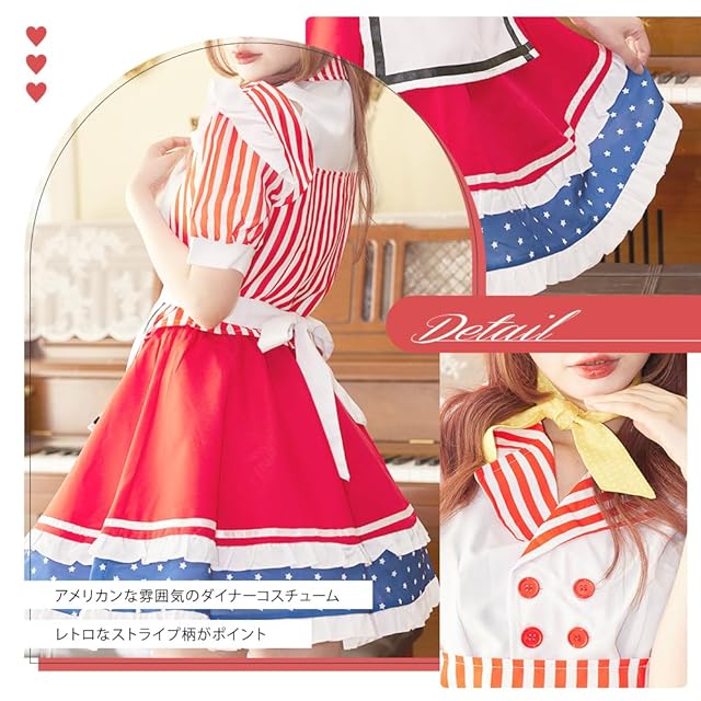 1950年代のアメリカンダイナーを彷彿とさせる、レトロでポップな印象の「アメリカンレトロダイナー」は、アメリカのウェイトレスをイメージした可愛いコスチュームです。
