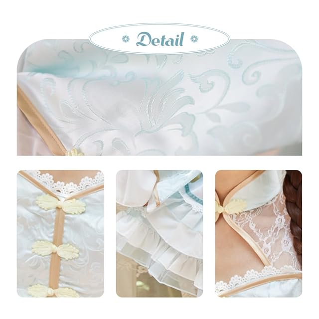 さらに、髪型アレンジが楽しめるおだんごパーツがセットになっており、チャイナガール風の仕上がりが完成。コスプレイベント、アニメコンセプトカフェ、SNS、誕生日撮影やテーマパーティーなど、多様な場面で大活躍します。甘めで可愛いチャイナスタイルをお探しの方におすすめの一着です。