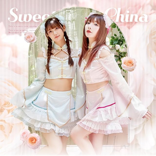 可愛さ全開のチャイナコスプレ「スウィートチャイナ」は、パステルカラーの配色とふんわりミニ丈スカートが特徴的なガーリーなチャイナ衣装です。