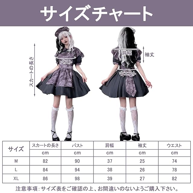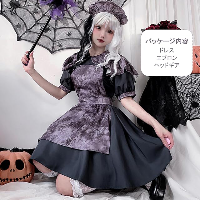 商品名:[Joyesplay] コスプレ ハロウィン ゴシック メイド服 ゴースト ゾンビ ゴシックロリータ ワンピース メイド服 レディース ロリータ 衣装 幽霊 恐怖風 お化け キョンシー ドレス