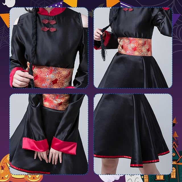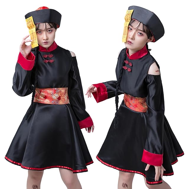 【商品について】お札付き帽子+ワンピース。フリーサイズでバスト88 CM、ウエスト80CM、スカートの長さは 84CM。女性用のキョンシーガールコスプレコスチューム、ハロウィンに中華風の雰囲気に溢れます。