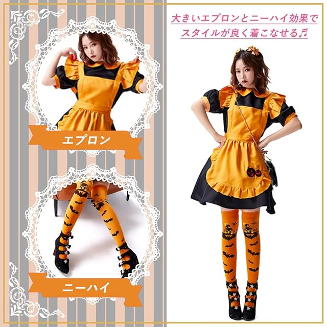 [SUNAO] 【パニエ・ニーハイ付き】 ハロウィン メイド服 コスプレ ウィッチかぼちゃ ウェイトレス ゴスロリ コスチューム 仮装 衣装 魔女 大人 ハロウィン仮装