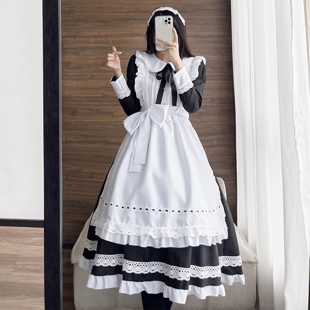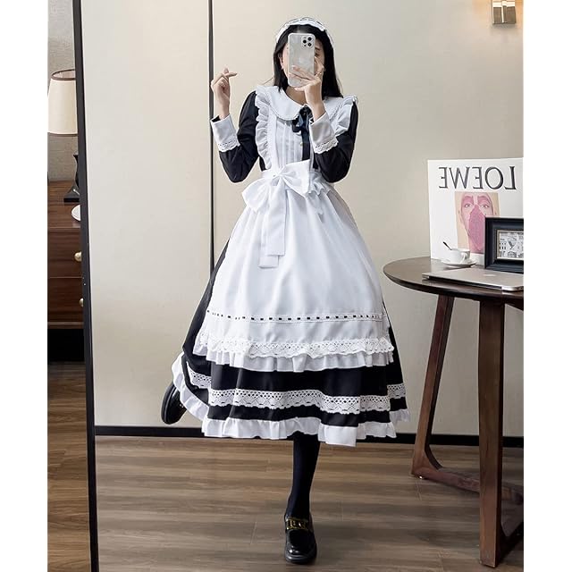 [YAISHN] メイド服 ゴスロリ 可愛い ロリータ 正統 ドレス ロング 人気 ワンピース ハロウィン 仮装 レディース コスプレ 長袖 蝶結ぶ パーティー イベント 演出服 ニーハイソックス カチューシャ 6点セット (L) | SHOP RUNA