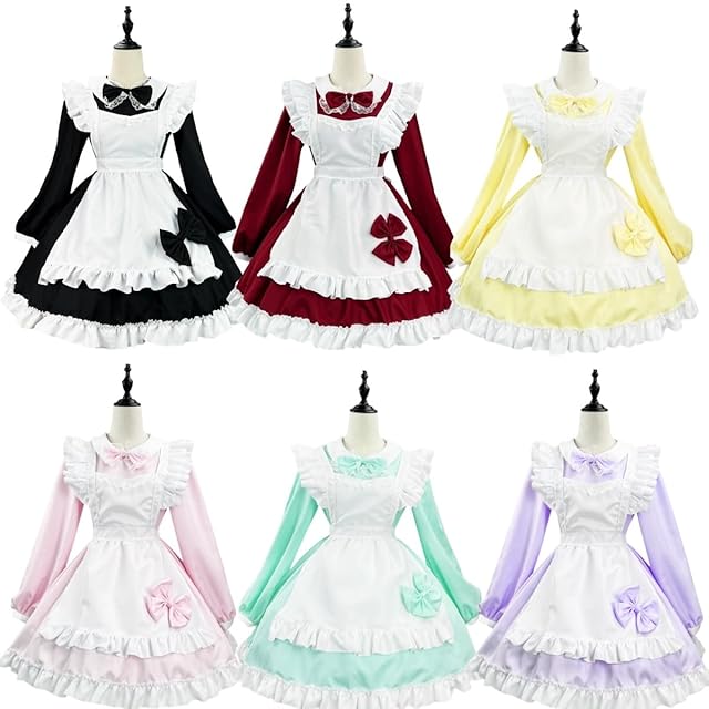 メイド服 コスプレ 5点セット 長袖 日系 萌え 可愛い コンカフェメイド