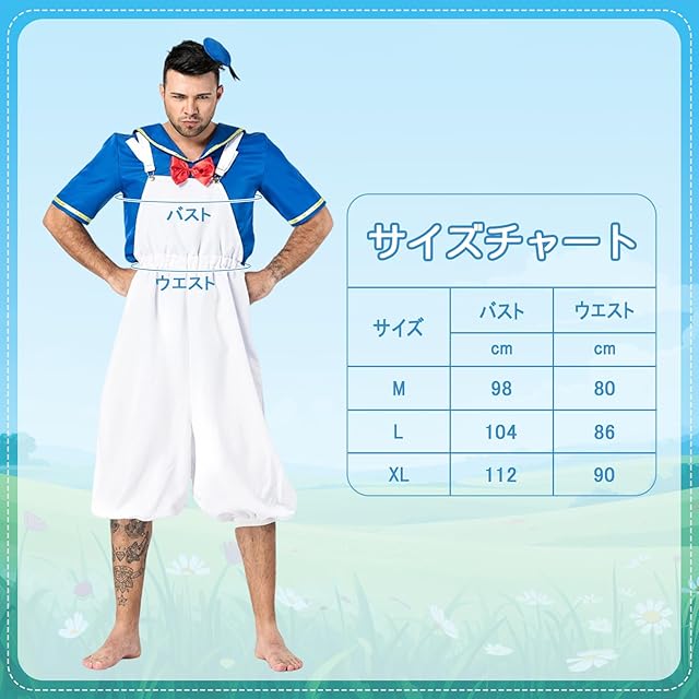 商品名:[Matreeglam] ハロウィン コスプレ セーラー服 ダック アヒル コスチューム 大人 メンズ 海軍風 衣装 海軍 仮装 セーラー服 変装 大きいサイズ かわいい 衣装 演出服 アニメ動画 遊園 文化祭 学園祭 大人用 4点セット