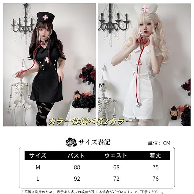 【手軽に変身】コスプレに必要なものが全てセットになっており、メイクとヘアセットで自由にアレンジして、簡単に白衣の天使・ブラックナースに変身できます。ハロウィン、仮装パーティ、様々なイベントにオススメ!