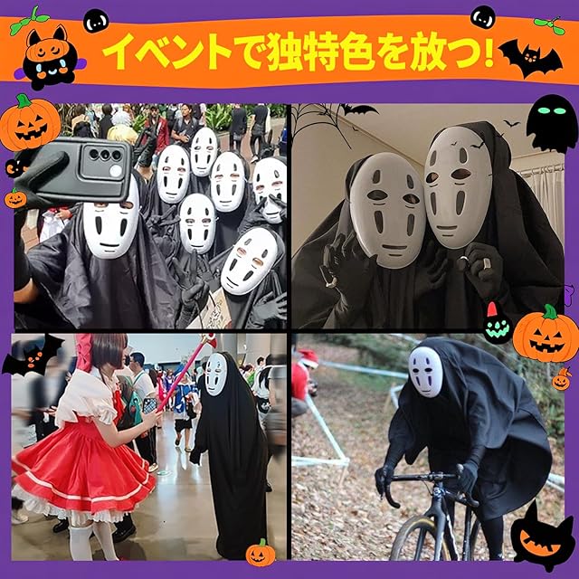 【カオナシ 適用場所】コスプレ、学園祭、祭り、イベント、文化祭、化粧舞踏会、パーティー、演出、誕生日、クリスマス、ハロウィン、ホラーハウス、新年パーティーのエンターテインメント、ギフト、イベント衣装、ハロウィンなどのさまざまなイベントで使用できます。撮影、コスプレ、変装パーティー、日常の着用にも適しています。