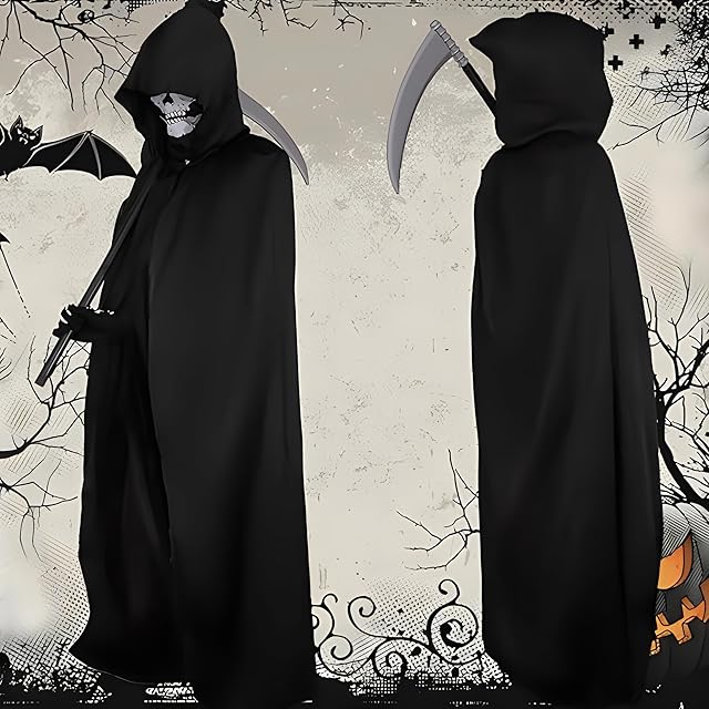 商品名:[YZYVIOW] 死神 コスプレ マント ハロウィン 仮装 コスチューム 死神コス 4点セット マント マスク かま 手袋 ホラー ハロウィン 骸骨 小道具 お化け 屋敷 パーティー用衣装 男女兼用