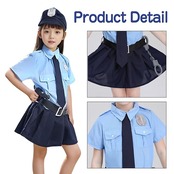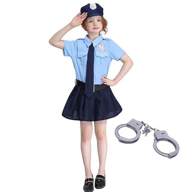 [Moerstar] ポリス 仮装 子供 女の子 お巡りさん ハロウィン コスプレ 婦警 制服 5点セット コスチューム ワンピース 帽子 ベルト ネクタイ 手錠 警察官 婦人警官 舞台衣装 イベント 半袖 (推薦身長:150cm)