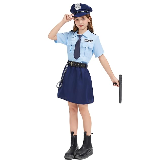 [マドルガーダ] 警察官 ポリス コスプレ 女の子 婦警 警官 婦人警官 ハロウィン タトゥーシール バッグ カチューシャ 付き 豪華9点セット キッズコスチューム S808 (XL(130-140CM)) | SHOP RUNA