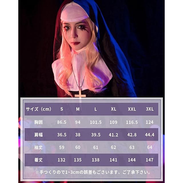 商品名:[神併良品] シスター コスプレ 頭巾と十字架付き 死霊館のシスター 黒 コスプレ 修道女 コスプレ衣装 修道服 大人用 演劇 仮装 cosplay (ブラック, M)