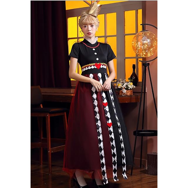 [尚基製造] アリス 衣装 コスチューム ハートの女王 コスプレ ハロウィン ローマ コスチューム レディース レッド 大人 仮装 セクシー コス 衣装 舞台服 パーティー (S/M)