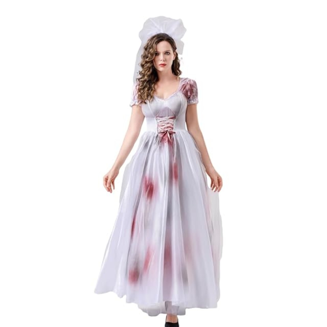 [Yolrky] 花嫁 コスプレ 血まみれ ハロウィン ゾンビ 幽霊 デビル 鬼嫁 ヴァンパイア 吸血鬼 コスチューム ワンピース (S)
