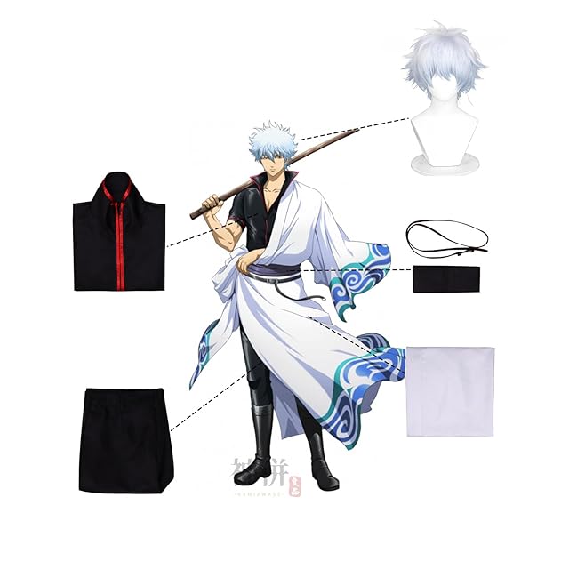 [神併良品] 坂田銀時 コスプレ ウィッグ付き 白夜叉 銀魂 コスプレ衣装 大人用 仮装 文化祭 イベント コスチューム ステージ服 Sakata Gintok cosplay (坂田銀時 ウィッグ付き, XL) | SHOP RUNA