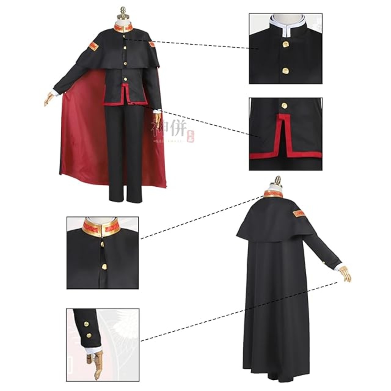 商品名:[神併良品] 花子くん コスプレ マント+ウィッグ付き 柚木普 軍服 コスプレ衣装 大人用 仮装 文化祭 イベント コスチューム ステージ服 Hanako cosplay (花子くん マント+ウィッグ付き, XL)