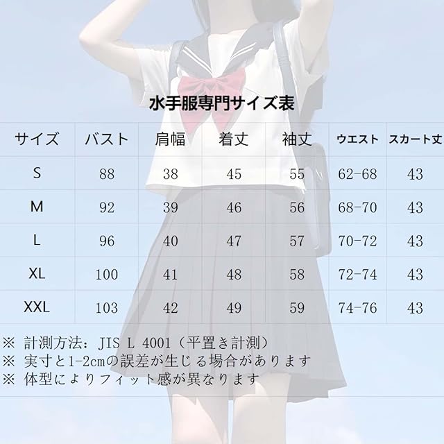 [ゼニスグッズ] セーラー服 コスプレ 3点セット 半袖対応 サイズフリー JK制服 学生制服風 関西襟 プリーツスカート蝶ネクタイ 可愛い 卒アル風 文化祭 学園祭対応 (ブルー, M) [並行輸入品]