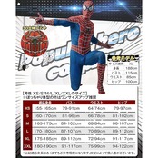 【スパイダーコスプレ・2点セット内容】 全身タイツ+分離式マスクの2点セット。付属品として蓄光タトゥーシール(ハロウィン用)1枚付き。155-190cmの身長に対応し、初心者でも簡単に着用可能。①頭部マスクとボディが分離式(セパレートタイプ) ②背中にロングファスナー付き(腰まで開閉可能) ③マスクにもファスナー装備で着脱が簡単 ④目の部分はレンズ付きで、メッシュ加工により視界を確保 ⑤足先から頭まで全身をカバー(靴着用可能)