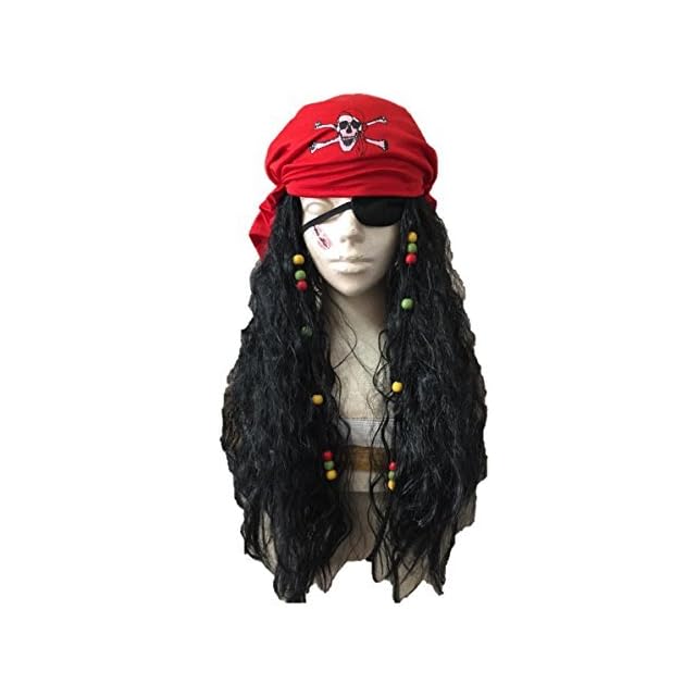 商品名:海賊 顔面セット! 【 海賊 レゲエ かつら 】【 パイレーツ バンダナ 】【 眼帯 】 コスプレ ハロウィン パーティー クリスマス 4点セット