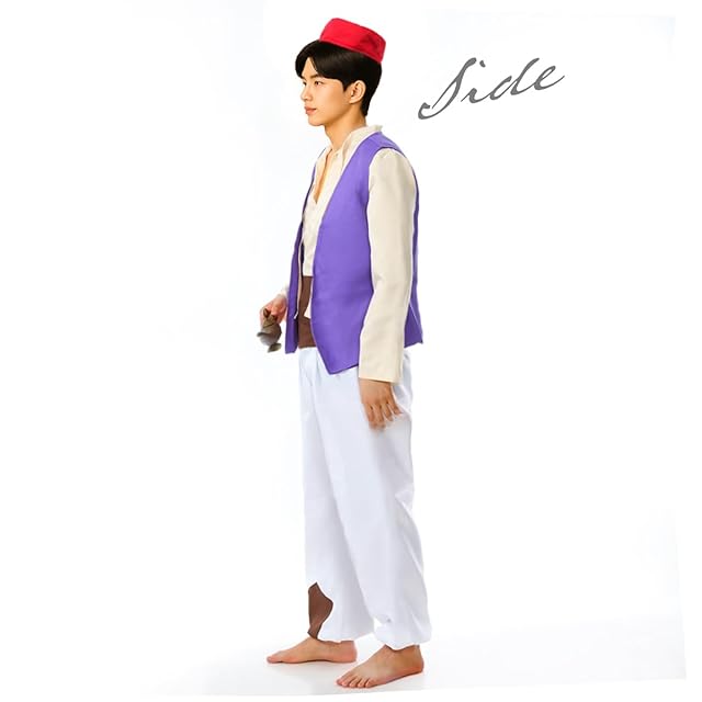 ・フルセットですのですぐにアラジンに変身できます。 ・上質な素材を採用しています。 ・ディティールにこだわって作られています。 ・忠実に再現して作られており、コスプレのクオリティーを高めます。 ・鮮やかパープルのベストがポイントです。 ・アラジンになりきって仮装イベントを楽しみましょう。