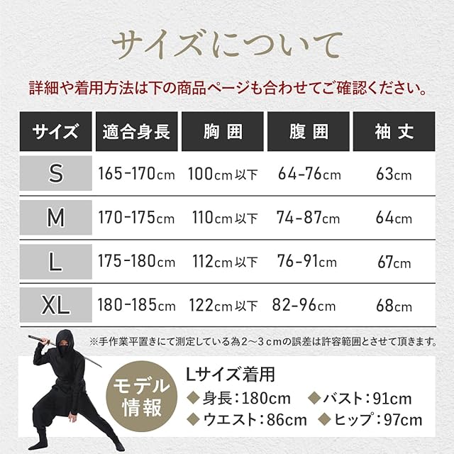 ⭐【 リアルなデザイン 】高級生地を使用したクールでスタイリッシュなコスチュームです。和風コスなので、年齢も問わず幅広くお使い頂けます。