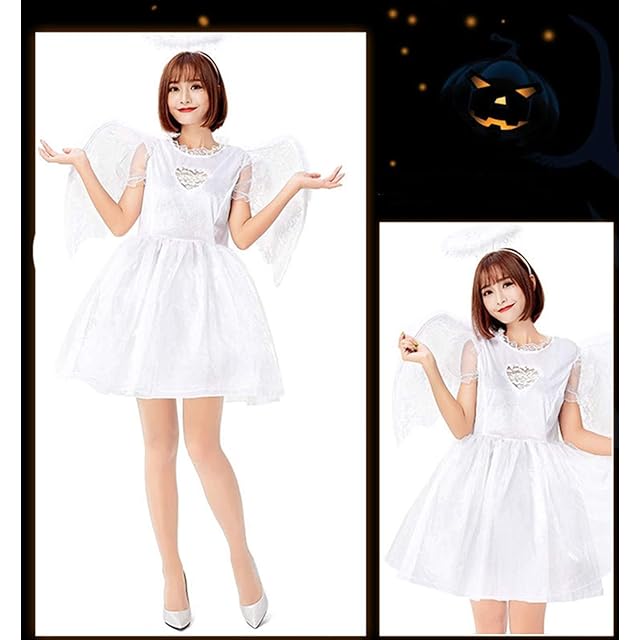 商品名:[JUNDOMECY] ハロウィン コスプレ 天使 デビル エンジェル 悪魔 レディース 大人 衣装 ホワイト 黒 羽 可愛い セクシー コスチューム イベント 仮装 パーティー 文化祭 (ホワイト)