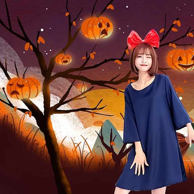 [LAMONKE] ハロウィン コスプレ 魔女の宅急便 キキ 仮装 大人用 魔女 ワンピース カチューシャ付き 2点セット 魔女の宅配屋さん レディース パーティー イベント 衣装 フリーサイズ (ネイビー)