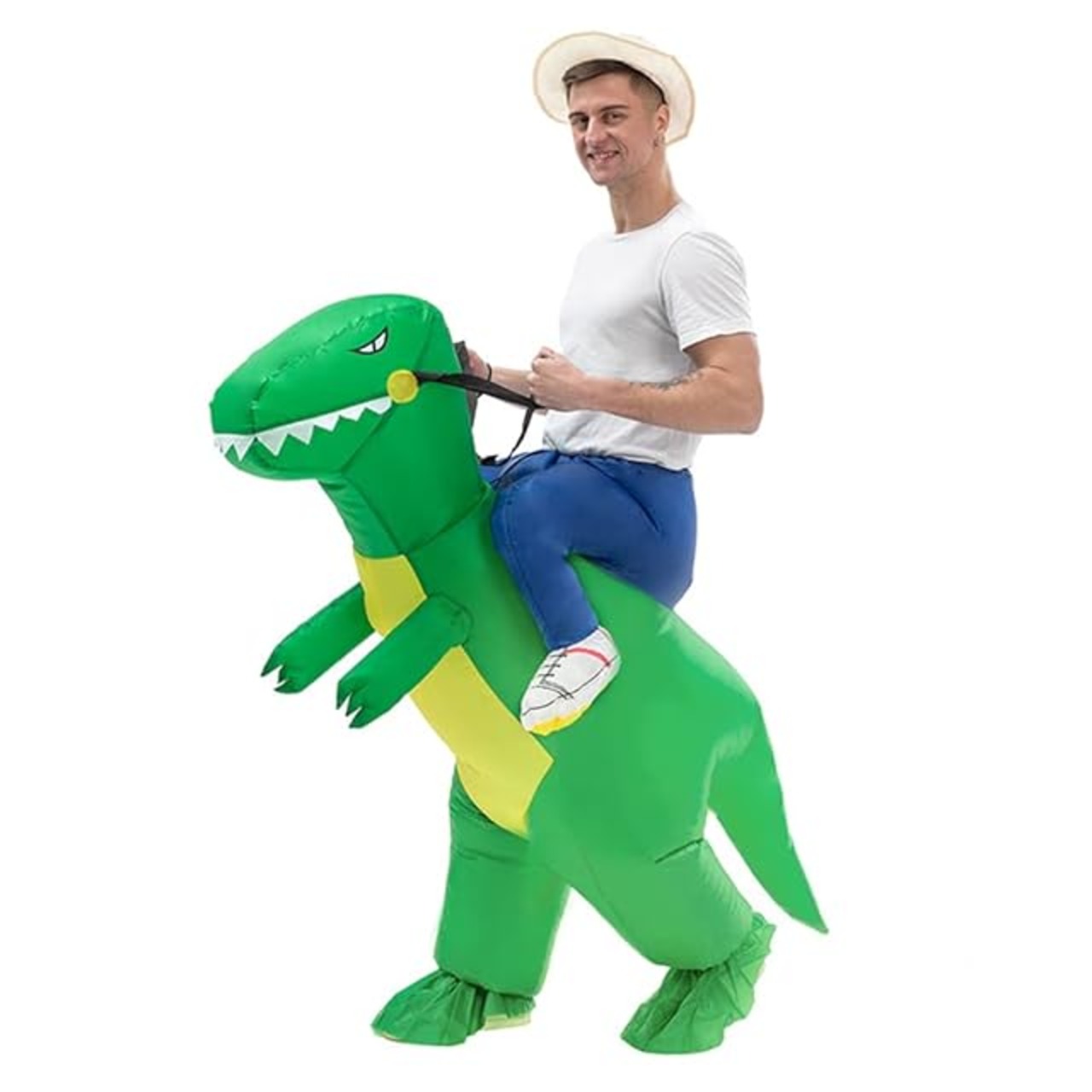 [MUXIU] ハロウィン 恐竜 コスプレ 緑 赤 オレンジ ブルー 着ぐるみ 仮装 道具 膨張式 変装スーツ 面白い いたずら 人気 パフォーマンス フリーサイズ イベント 大人用 4色展開 (グリーン)