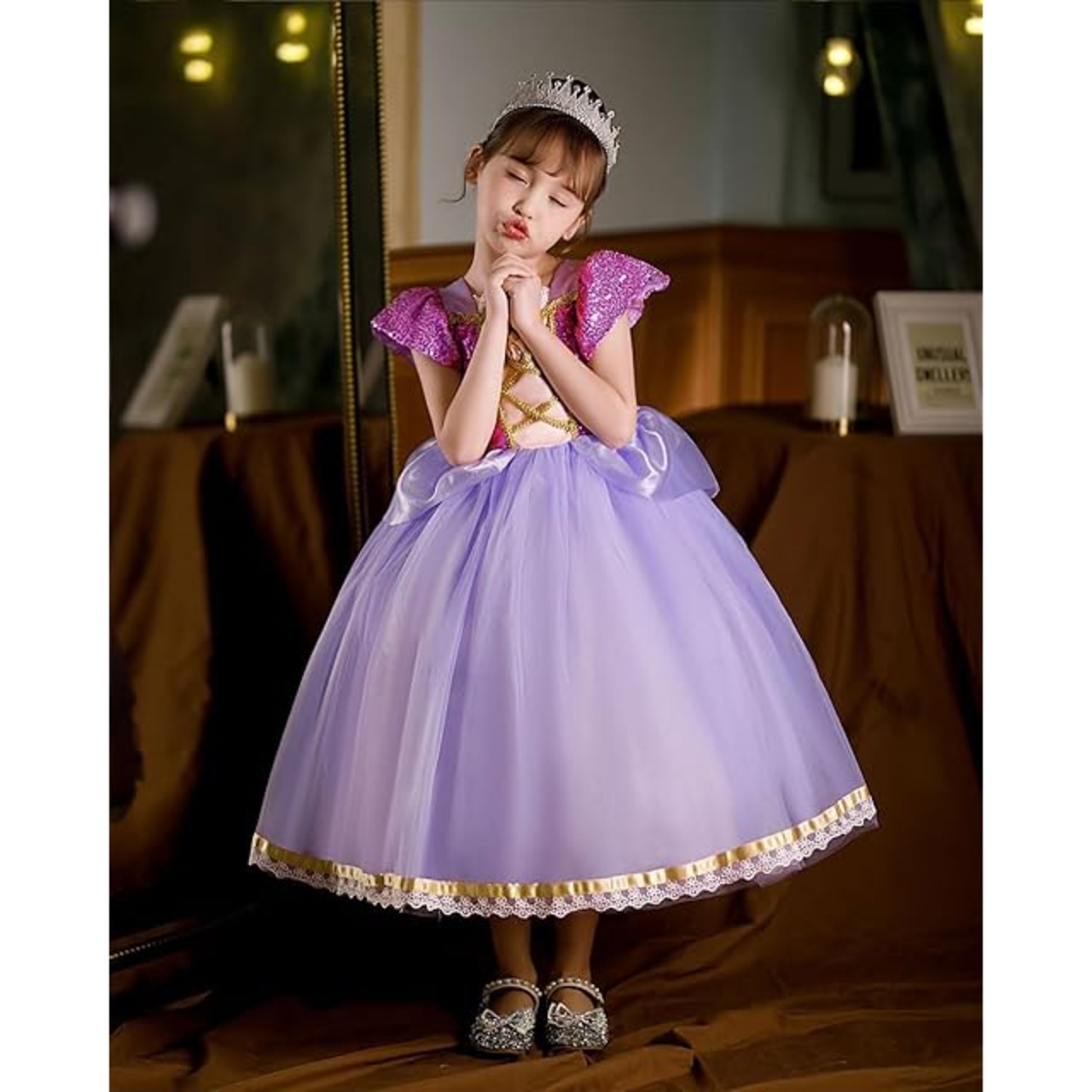 [MUXIU] プリンセス ドレス 女の子 ハロウィン 仮装 姫風 子供 可愛い 人気 ワンピース コスプレ 诞生日 お遊戯会 文化祭 演奏会 パーティー イベント 演出服 カチューシャ 3点セット (100, パープル)