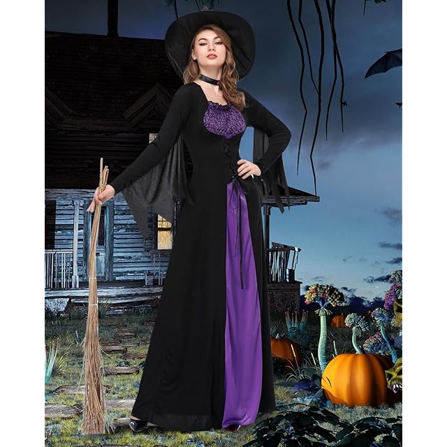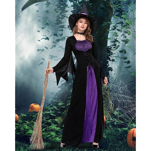 【クラシックデザイン】ハロウィンの季節には、この魔女ワンピースドレスが不可欠です。クラシックなデザインで、魔法の世界に一歩踏み入れましょう。
