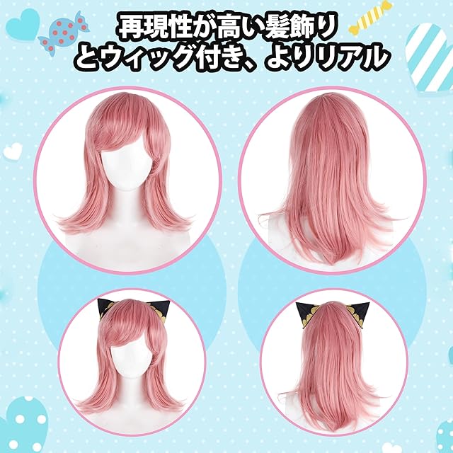 商品名:[§y∞yoiyasu] アーニャ コスプレ ハロウィン 大人用 仮装 レディース ワンピース ウイッグ付き 5点セット 衣装 パーティー クリスマス 仮装大会 学園祭 イベント コスチューム (L, 大人用)
