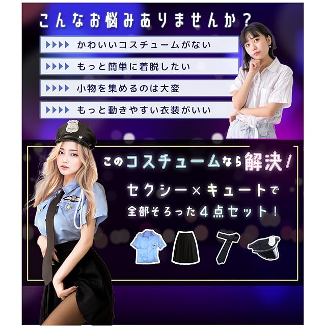 [FjU] ポリス コスプレ 【豪華フルセット】 ハロウィン 警察官 コスプレ衣装 仮装 レディース