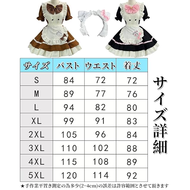 セット内容:ワンピース+エプロン+カチューシャ+蝶結び*2