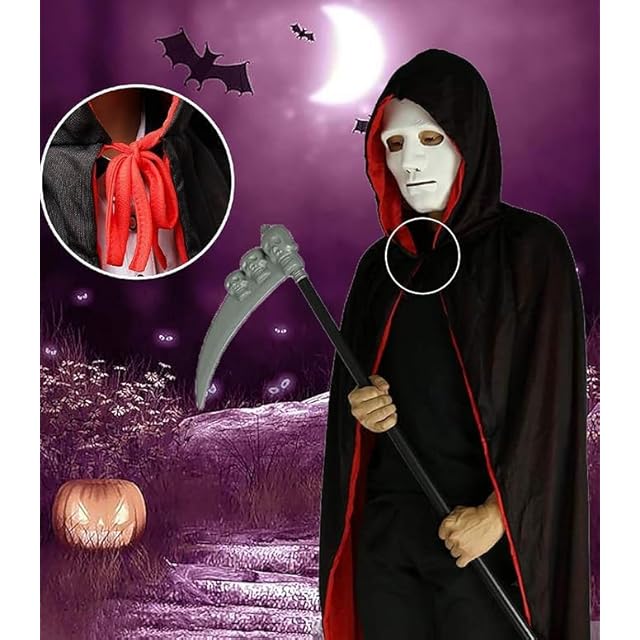 [Ayoii] ハロウィンマント 仮装用マント コスチューム ドラキュラ変装 死神 吸血鬼 ロング ハロウィン ブラック 肩下約140㎝ フード付き ハロウイン仮装 コスプレ衣装 悪魔 魔法師 リバーシブル 文化祭 学園祭 コスプレ ハロウィーン フリーサイズ 大人用 男女兼用 cosplay (フード付き 140CM)