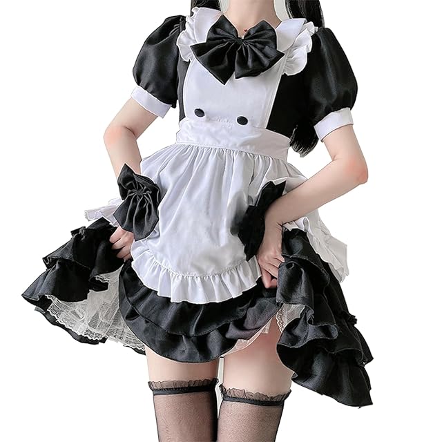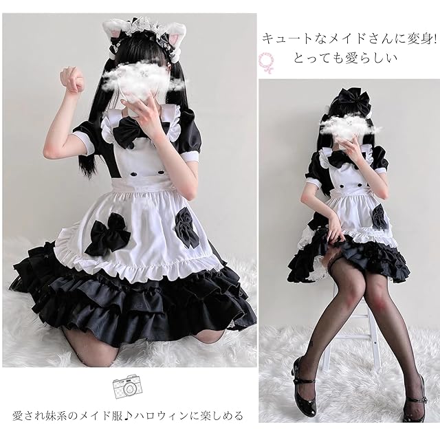 [AOTYP] コスプレ メイド メイド仮装 萌え 可愛い ロリータ ゴスロリ ワンピース ハロウィン 仮装 レディース コスプレ 半袖 蝶結ぶ パーティー イベント 演出服 maid cosplay cute ブラックL