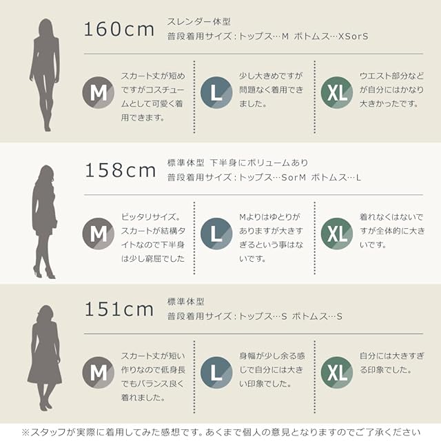 【Mサイズ】バスト:89-94cm・着丈(トップス):58cm・袖丈:23cm・ウエスト:54-62cm・着丈(ボトムス):41cm 【Lサイズ】バスト:95-100cm・着丈(トップス):58cm・袖丈:23cm・ウエスト:60-68cm・着丈(ボトムス):42cm 【XLサイズ】バスト:101-106cm・着丈(トップス):59cm・袖丈:24cm・ウエスト:64-70cm・着丈(ボトムス):42cm※サイズは平置きで測っておりますが、多少誤差が生じる場合がございます。
