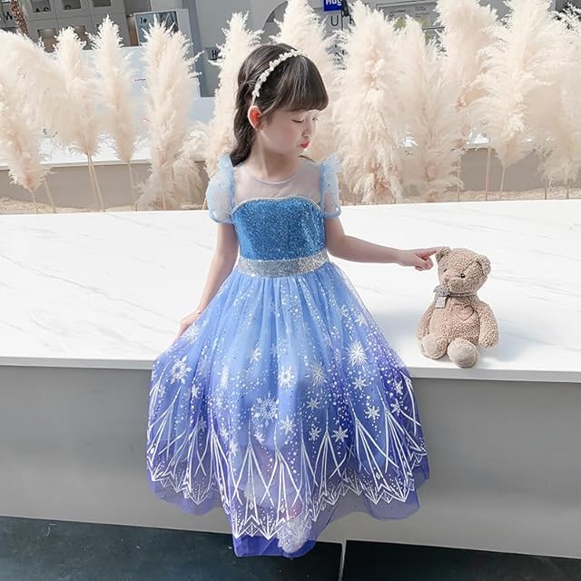 [MUXIU] プリンセス ドレス 仮装 ハロウィン 女の子 子供 エルサ風 お姫様 ブルー コスプレ アクセサリー 女の子 なりきり 可愛い ワンピース 誕生日 七五三祝い 撮影用 文化祭 遊戯会 文化祭 ステージ衣装 プレゼント 5点セット マント付き (100)